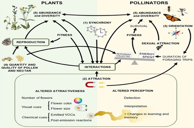 - It may alter plant and pollinator communities through species-specific sensitivity and reduced pollinator sexual communication.