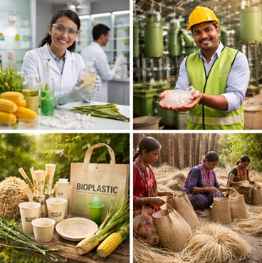 Biomaterials emerge at this intersection—offering a pathway that combines climate action, industrial competitiveness, and rural value creation. Their growing relevance aligns with India’s commitments under the Paris Agreement, its ban on single-use plastics, and the broader push for a circular economy.