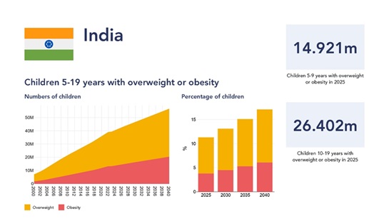 India now ranks second globally after China in terms of the number of children living with overweight and obesity.
