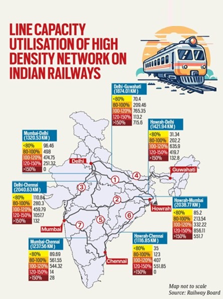 FAQs1. What is the purpose of expanding lines on the Badlapur–Karjat stretch ? To reduce congestion on the Mumbai–Chennai HDN and support higher suburban and long-distance traffic volumes. 2. What makes HDN corridors different from regular routes ? They carry the densest passenger and freight loads and operate far above optimal capacity. 3. Why is the HDN facing such heavy congestion ? Rapid growth in passenger demand, increased freight movement, and limited parallel infrastructure. 4. How will DFCs help reduce HDN overload ? By shifting freight trains from HDN to dedicated corridors, creating more capacity for passenger trains. 5. What does 150% utilisation mean ? The route is running 1.5 times the number of trains it was designed to handle—leading to delays and safety concerns. |