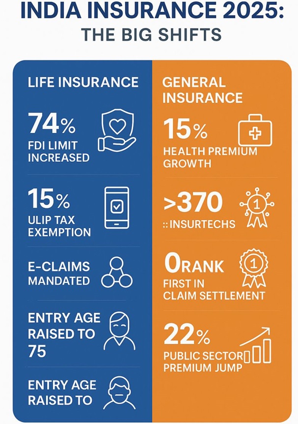 - On 1st February 2025, the Finance Minister announced a landmark reform: raising FDI in insurance from 74% to 100%.