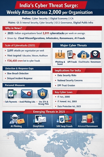 Prelims: (Cyber Security + Digital Economy + CA) Mains: (GS Paper 2 – Governance, Digital Public Infrastructure; GS 3 – Internal Security, Cyber Security, Science & Technology) |