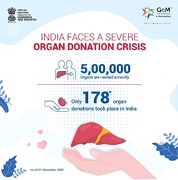 - Only 1,000–1,200 deceased donors annually despite 1.6 lakh road accident deaths