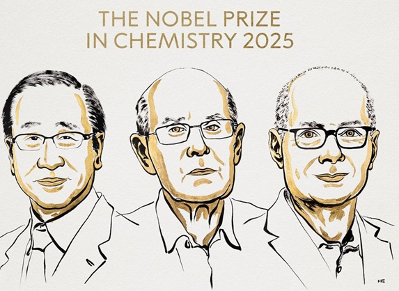 The Royal Swedish Academy of Sciences announced on October 8, 2025, that the Nobel Prize in Chemistry is awarded to Susumu Kitagawa, Richard Robson, and Omar M. Yaghi “for the development of Metal-Organic Frameworks (MOFs).”