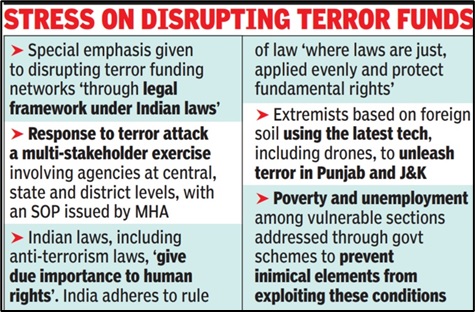 The framework aims to dismantle terror networks by cutting off access to funding, weapons, and safe havens, both within India and abroad, targeting not just terrorists but also their financiers and supporters.