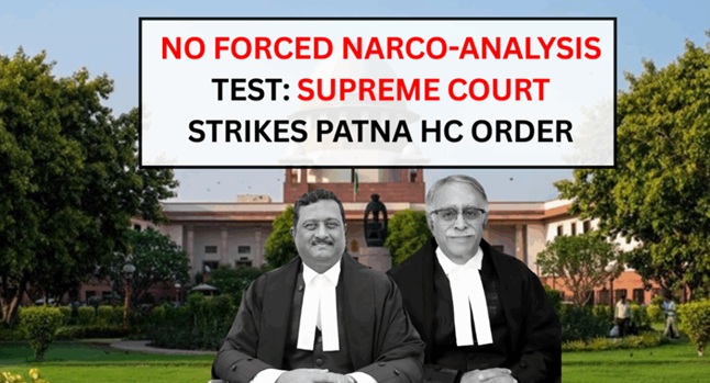 The Supreme Court of India has set aside a Patna High Court order permitting a compulsory narco analysis test in Amlesh Kumar v. State of Bihar (2025). The Court ruled that forced narco tests violate Articles 20(3) and 21, reaffirming earlier constitutional protections upheld in Selvi v. State of Karnataka (2010).