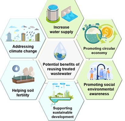 Using treated wastewater for other purposes (e.g., irrigation, landscaping, cleaning). |
