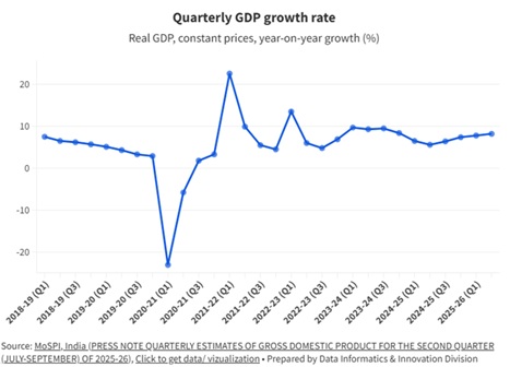 भारत की आर्थिक वृद्धि ने वित्त वर्ष 2025-26 की दूसरी तिमाही (जुलाई–सितंबर) में विशेष बढ़त दर्ज की है।