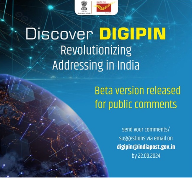 हाल ही में डाक विभाग ने डिजिपिन नाम से राष्ट्रीय एड्रेसिंग ग्रिड का बीटा संस्करण जारी किया।