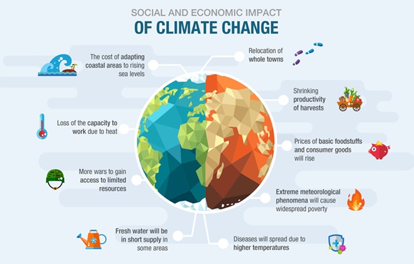 जलवायु परिवर्तन पृथ्वी पर सभी जीव-जंतुओं और मानव समाज पर प्रत्यक्ष और अप्रत्यक्ष प्रभाव डाल रहा है। इसके परिणामस्वरूप मौसम चरम, समुद्री जल स्तर में वृद्धि, ग्लेशियरों का पिघलना और जैव विविधता का नुकसान हो रहा है। इन प्रभावों से कमजोर (वुल्नरेबल) समुदायों, सीमांत किसानों, लघु द्वीपीय विकासशील देशों (SIDS) और पर्यावरणीय संसाधनों पर गंभीर प्रभाव पड़ता है।
