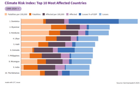 - 9,700 से अधिक चरम मौसम की घटनाएँ (1995–2024)