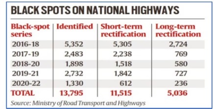 - अब तक 13,795 ब्लैक स्पॉट्स की पहचान की गई है।
