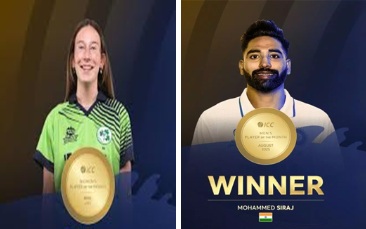 - भारत के तेज गेंदबाज मोहम्मद सिराज को अगस्त 2025 के लिए आईसीसी पुरुष प्लेयर ऑफ द मंथ से सम्मानित किया गया।