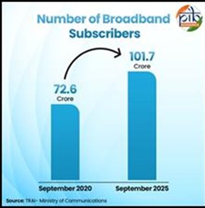 - 101.7 करोड़ से अधिक ब्रॉडबैंड ग्राहक (सितंबर 2025 तक)।