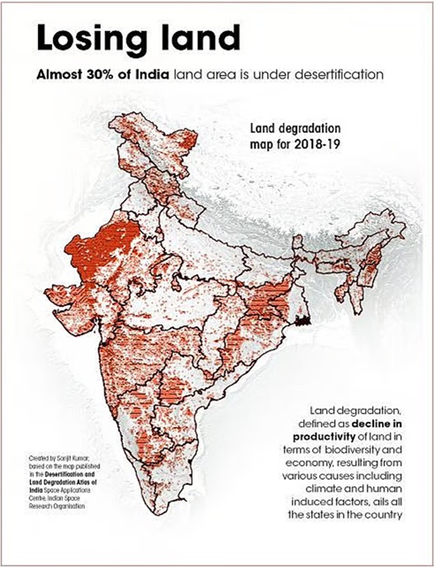 भारत विश्व के शीर्ष 10 “Land Degradation Hotspots” देशों में शामिल |