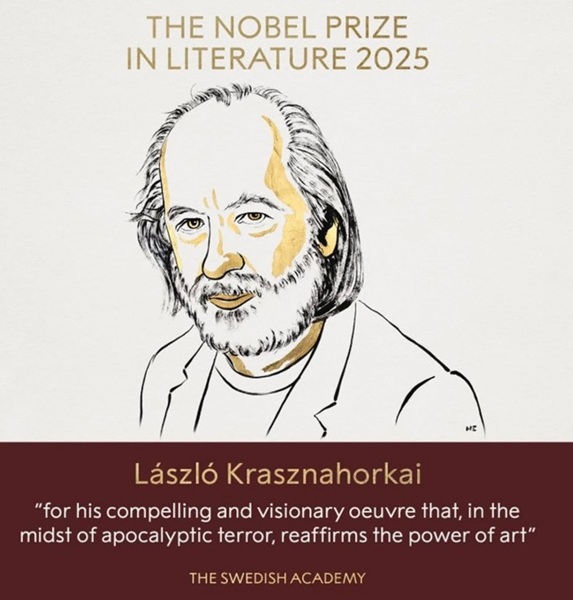 - हंगरी के प्रसिद्ध लेखक लास्ज़लो क्रास्ज़नाहोरकाई को उनकी दूरदर्शी, सर्वनाशकारी और दार्शनिक कृतियों के लिए साहित्य का नोबेल पुरस्कार 2025 प्रदान किया गया है।