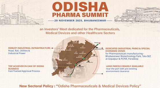 ओडिशा सरकार द्वारा 20 नवंबर को ओडिशा फार्मा समिट 2025 का आयोजन किया जाएगा।