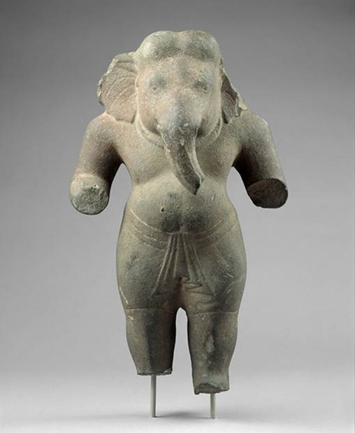 (चित्र 3: खड़े गणेश, पूर्व-अंगकोर काल (7वीं शताब्दी का उत्तरार्ध), कंबोडिया)