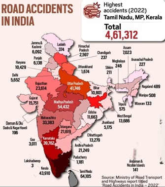 - चीन और अमेरिका जैसे बड़े देशों की तुलना में भी भारत में दुर्घटना मृत्यु दर कहीं अधिक है।