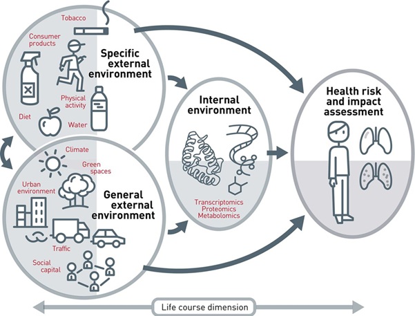 ये जोखिम जीवन भर संचित होते हैं और जीन के साथ अंतर्क्रिया करके रोगों की संवेदनशीलता निर्धारित करते हैं।